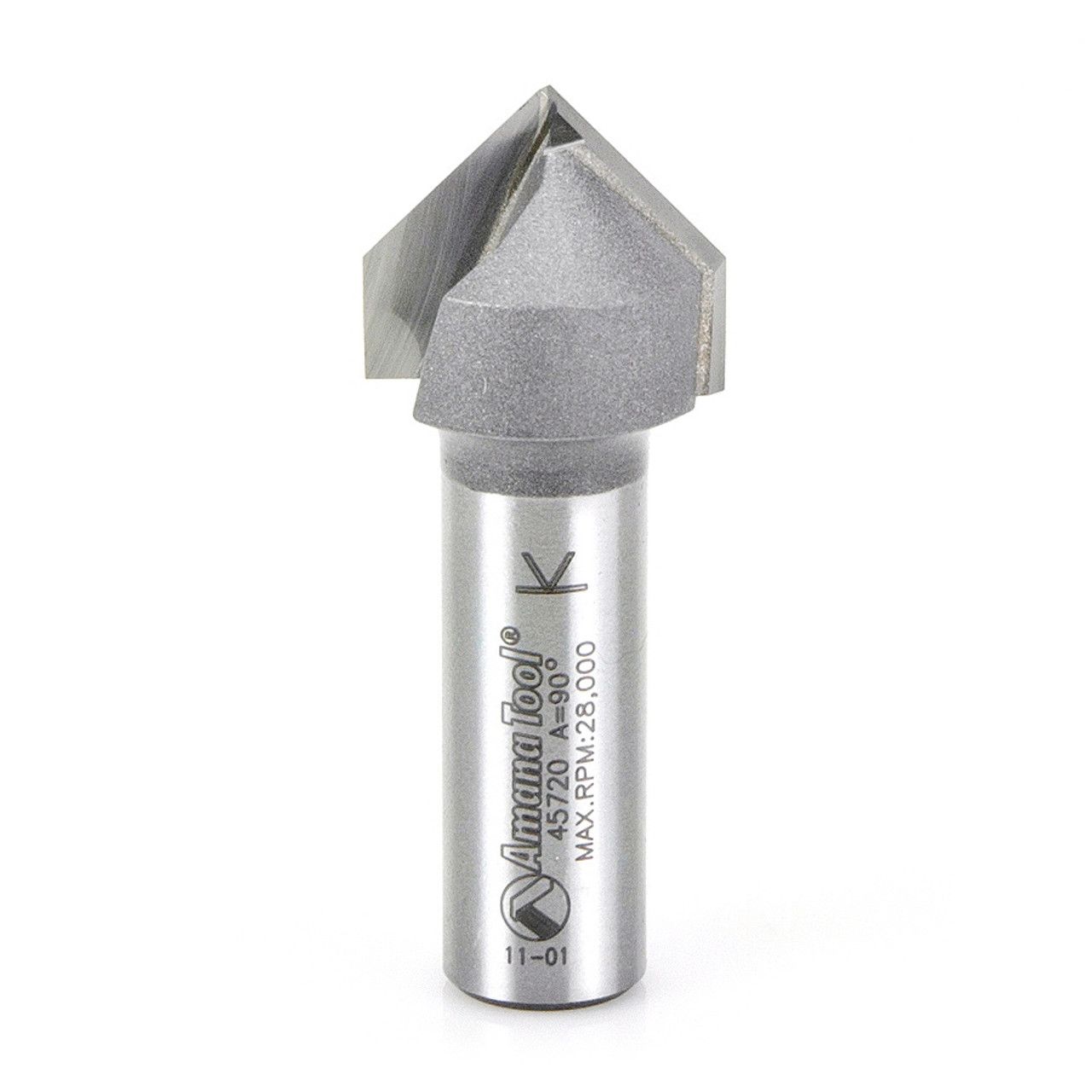 Amana tool 45720 Carbide Tipped V Groove 90 Deg x 7/8 D x 7/16 CH x 1/2 Inch SHK Router Bit