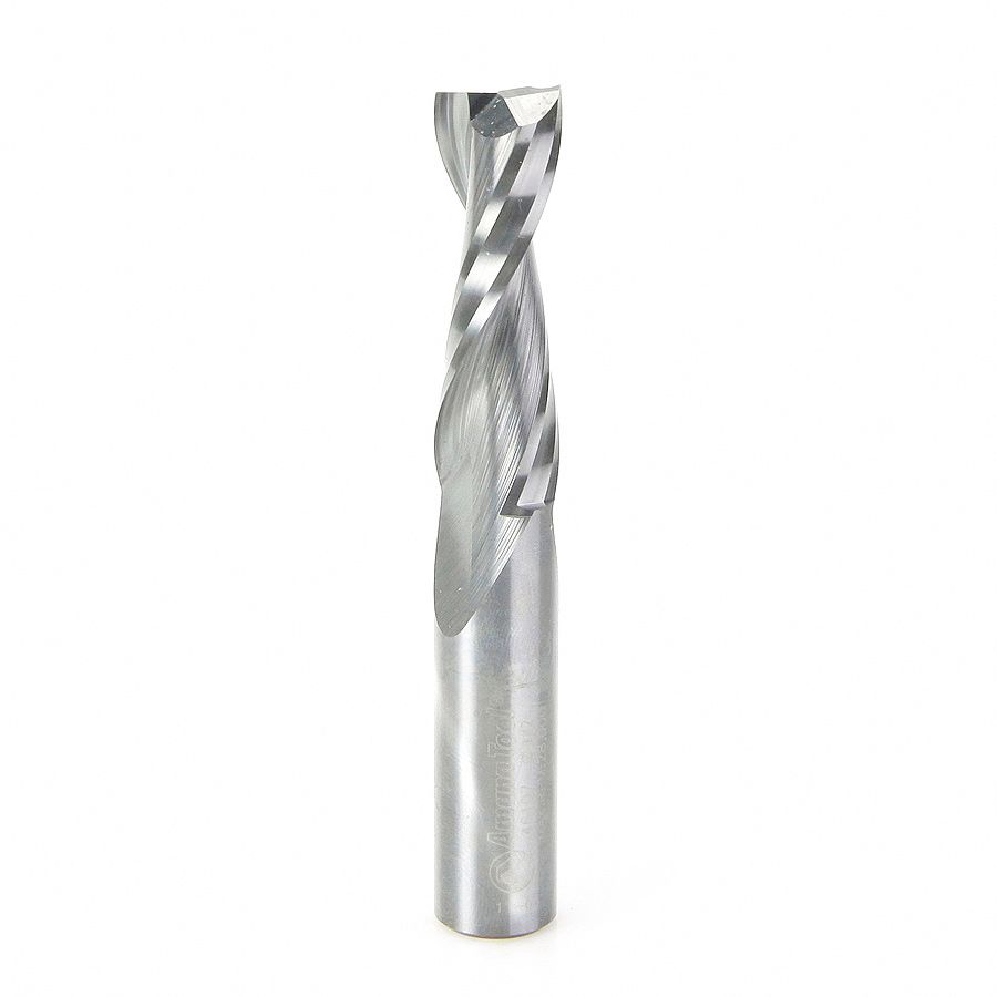 Spiral bits combine a shearing action in cutting with an augering action in chip clearance. The shearing action yields an especially clean & accurate cut, while the augering action clears chips from the cut. The “up-cut” shears from the bottom up, pulling chips from the bottom up, thus allowing deeper penetration with less stress on the tool. An excellent choice for mortising.Unique carbide grade for longer lifetime in abrasive materialsProduces a superior finish and longer tool lifeRazor-sharp cutting edges/polished flutes'Can be used with hand-held, table-mounted