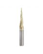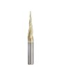 Great for deep profilingPerfect for model-makers on large 3D milling profiles in abrasive EPS foam and other materialsThe industrial router bits can be used in sign making & 3D Carving industries in MDF, Plastics, Bronze, Copper, Foam, Wood and other materials. The simultaneous 3-axis motion with the appropriate software allows full 3D capability that provides sign and 3D model makers the ability to work with any material.The solid carbide tips cut smooth 2D and 3D contours with reduced stepping while the proprietary ZrN coating (applied by the physical vapor deposition coating process) provides high resistance to wear, sharper cutting edges, extended tool life and less friction & heat buildup.The tapered design achieves high detail in deep cuts, improving the complexity and the detail of your finished work. The longer bits provide deeper cuts and larger slices with fewer passes, resulting in improved productivity and less assembly. These router bits are designed to last, saving you the costs of replacing lesser quality tools. These CNC cutting tools allow you to achieve precision, depth, unparalleled accuracy, detail and clarity in foam and other modern-day materials.Benefits of ZrN Coating:Creates incredibly precise detail workOptimized flute geometry and low Total Indicated Runout (TIR) guarantees clean cuts, essentially eliminates sanding and reduces chatter when used with low TIR spindlesCreates a harder and tougher cutting ceramic over carbide edge, allowing for a prolonged cutting edge life and helps to prevent the build-up/galling of material in the flutes while cuttingPVD ceramic hardcoat designed for soft, gummy and abrasive materialsHigh aspect ratio for single pass deep-reach cuttingHigh flute volume supports high feed rates and chip loads. Has the ability to run and/or be spun much faster than uncoated toolsFlute geometry optimized for cutting sign foam, sign board, hardwoods, thermoplastics and phenolic compositesExcellent for cutting:Acrylonitrile-Butadiene-Styrene (ABS)AcrylicAcrylic StoneAluminumBrassBronzeCompositeCopperCorianCoroplast*DibondEthafoam***Ethylene-vinyl Acetate Foam (EVA)Expanded Polystyrene Foam (EPS)Expanded Polypropylene (EPP)**Extruded Polystyrene Foam (XPS)FiberglassFiberglass PCB BoardFoam BoardGraphiteHDPEHDU20lbs High Density UrethaneMDF/HDFPALFOAM™Polyethylene (PE) Foam*PhenolicsPlasticsPhenolic CompositesPolycarbonate (Lexan™)Poly (methyl methacrylate) (PMMA)Polyethylene (PE) Foam***Polylam***Polyurethane FoamPVCPVC Foam BoardSign BoardSign FoamTitaniumTooling BoardWoodXPE (Cross Linked Polyethylene) Foam WARNING! Never attempt to cut ferrous metals with these bits. Inspect cut quality and adjust feed / speed accordingly.Note: Tools are manufactured with high balance, that allows them to run up to 60,000 RPM. Adjust your chip load and feed rate accordingly.For optimal results and extended tool life use mist lubricant system or air cooling.*Coroplast is soft plastic cardboard made with super soft, super flexible PVC.