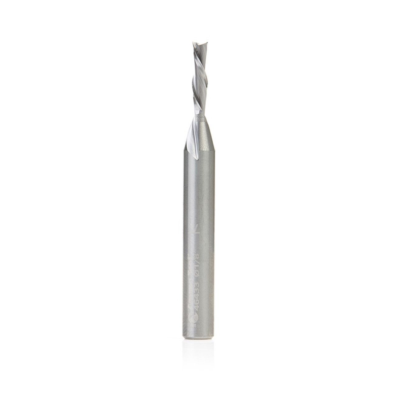 Spiral bits combine a shearing action in cutting with an augering action in chip clearance. The shearing action yields an especially clean & accurate cut, while the augering action clears chips from the cut. The “down-cut” cuts from the surface down, leaving a smooth edge at the surface.Unique carbide grade for longer lifetime in abrasive materialsProduces a superior finish and longer tool lifeRazor-sharp cutting edges/polished flutes'Can be used with hand-held, table-mounted