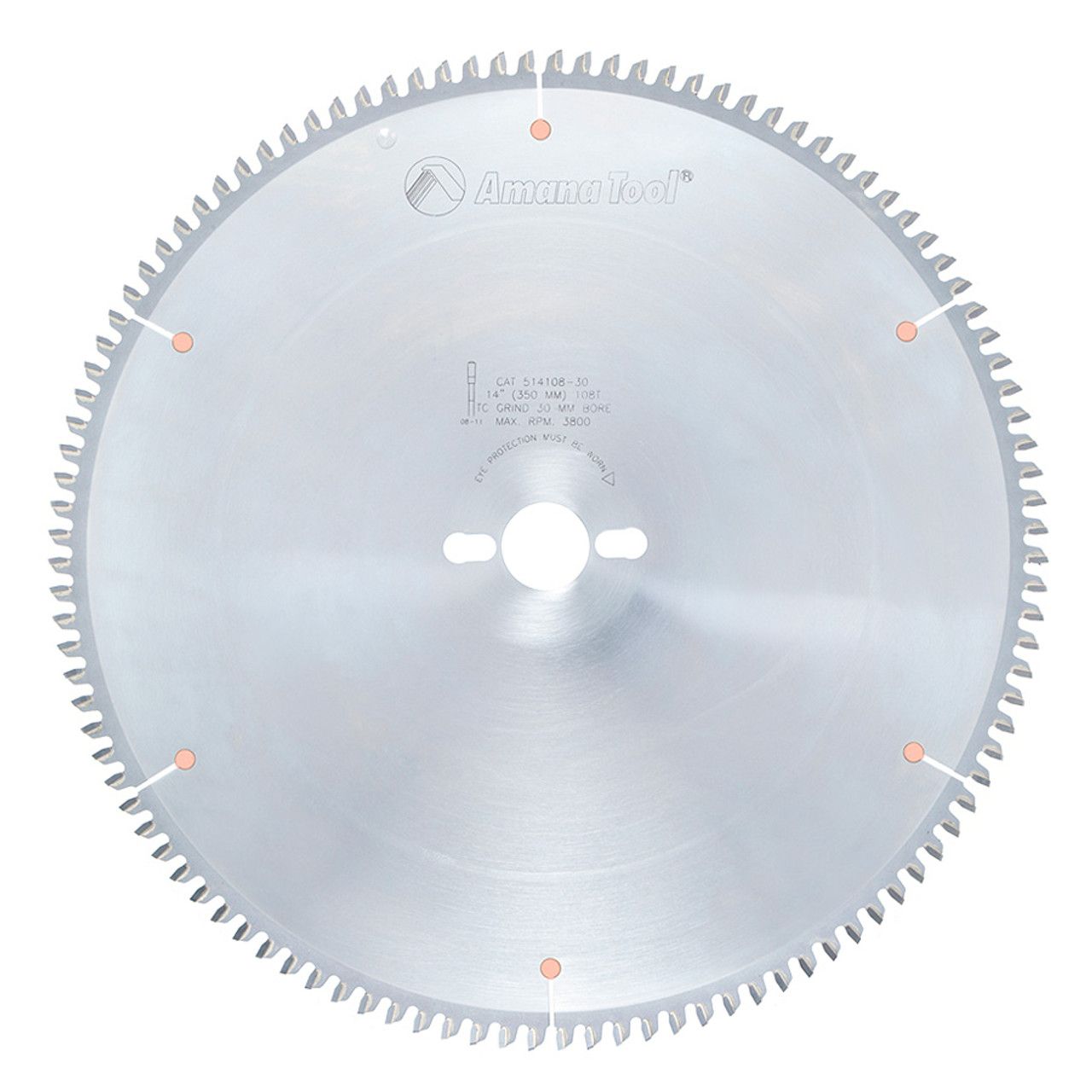 Amana tool 514108-30 Carbide Tipped Aluminum and Non-Ferrous Metals 14 Inch D x 108T TCG, -6 Deg, 30MM Bore, Circular Saw Blade