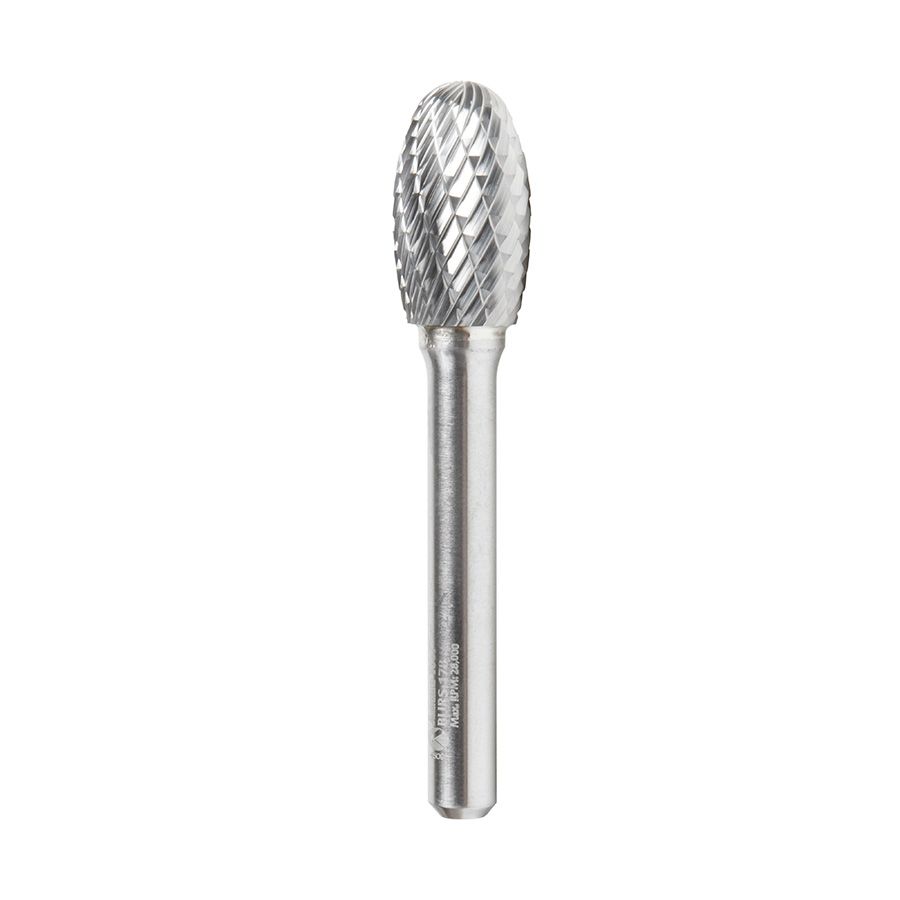 BURS-178 Solid Carbide Oval Shape 1/2 Dia x 7/8 x 1/4 Shank Double Cut SE Burr Bit for Die-Grinders