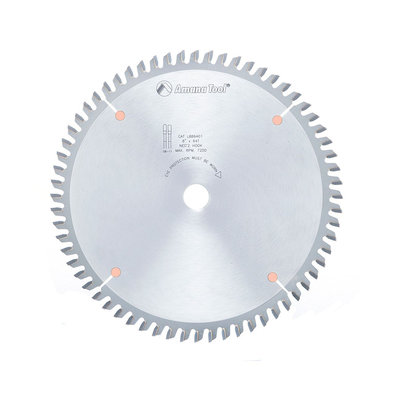 Amana tool LB86401 Carbide Tipped Non-Melt Plastic 8 Inch D x 64T M-TCG, -2 Deg, 5/8 Bore, Circular Saw Blade