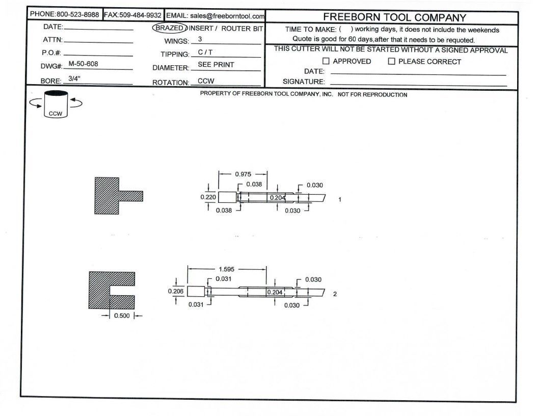 FREEBORN - MC-50-608 - CARBIDE TONGUE & GROOVE CUTTER Shaper Cutter