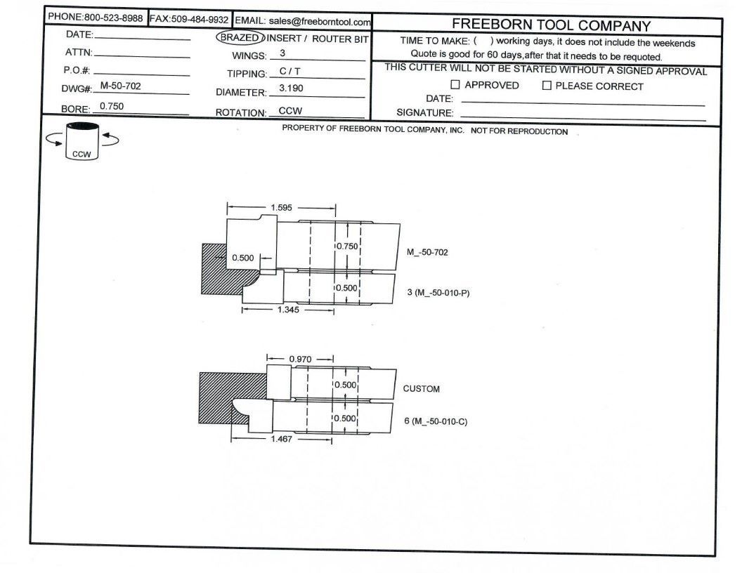 FREEBORN - MC-50-702 - CARBIDE TONGUE & GROOVE CUTTER Shaper Cutter