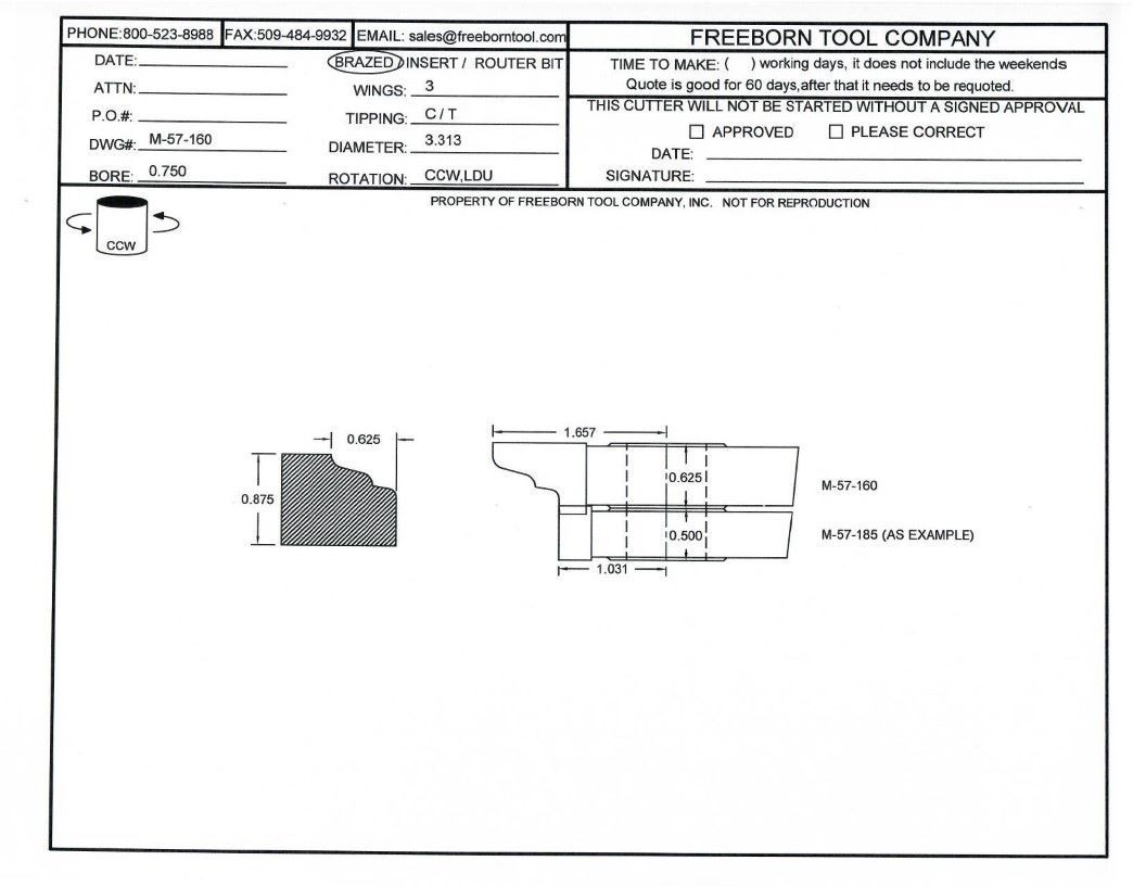 FREEBORN - MC-57-160 - CARBIDE DOOR EDGE DETAIL - 32mm SYSTEM Shaper Cutter