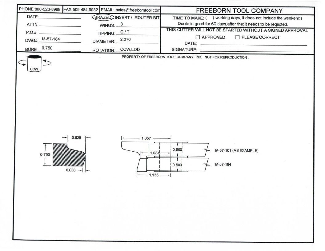 FREEBORN - MC-57-184 - CARBIDE BOTTOM CUTTER -32mm SYSTEM Shaper Cutter