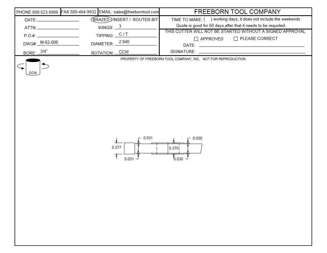 FREEBORN - MC-62-006 - CARBIDE STRAIGHT TOP GROOVER Shaper Cutter