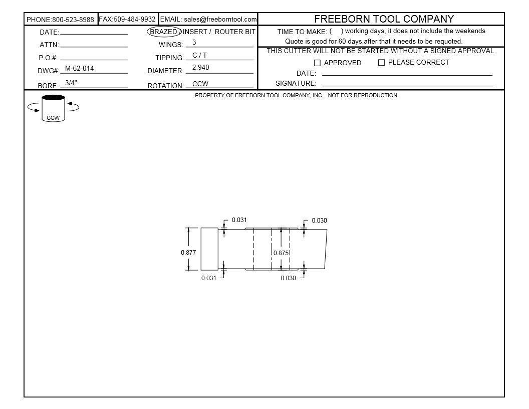FREEBORN - MC-62-014 - CARBIDE STRAIGHT TOP GROOVER Shaper Cutter
