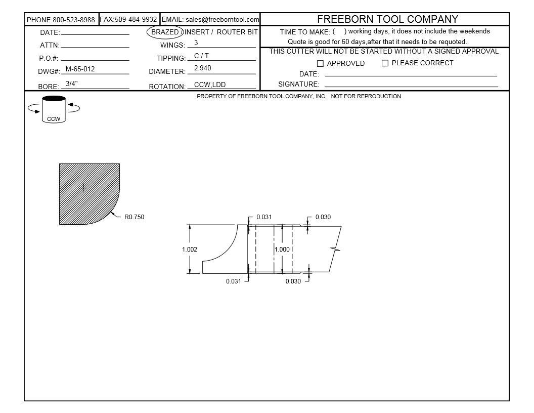 FREEBORN - MC-65-012 - CARBIDE CORNER ROUNDING CUTTER Shaper Cutter