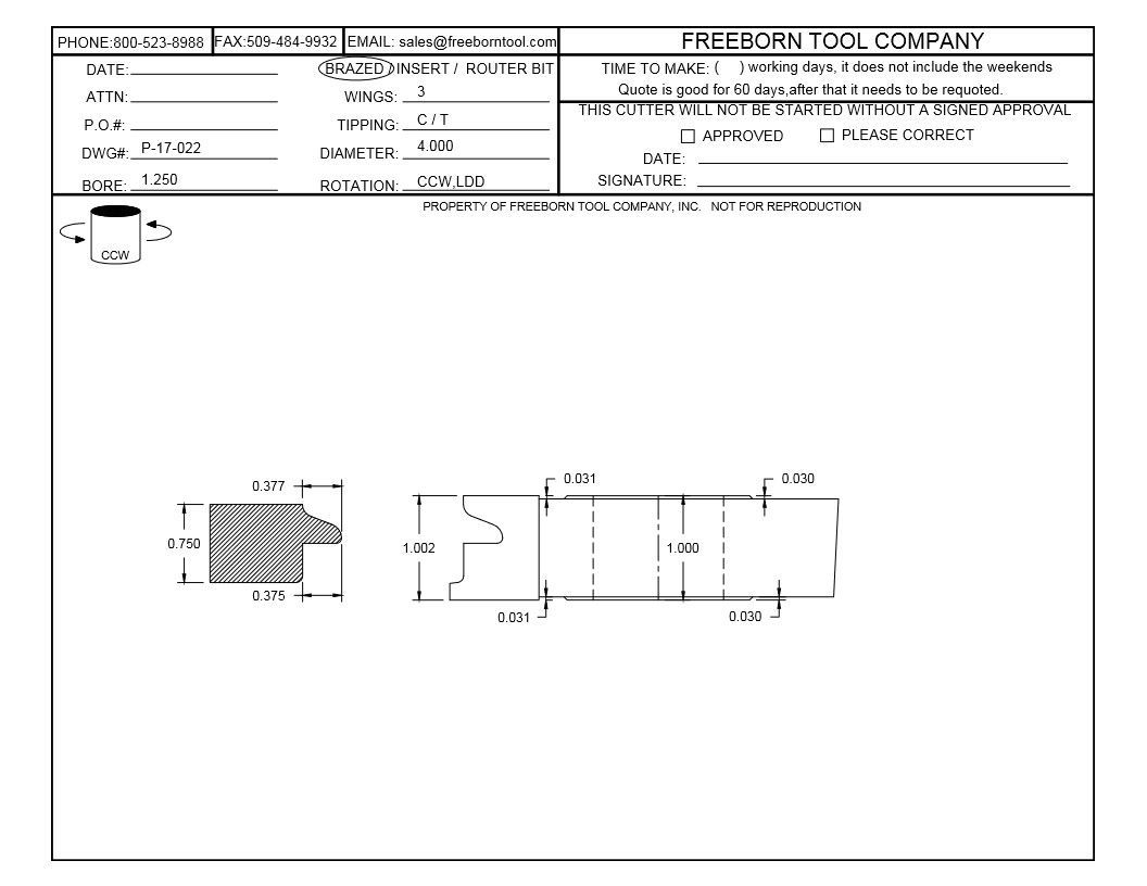 FREEBORN - PC-17-022 - CARBIDE DOOR EDGE DETAIL Shaper Cutter
