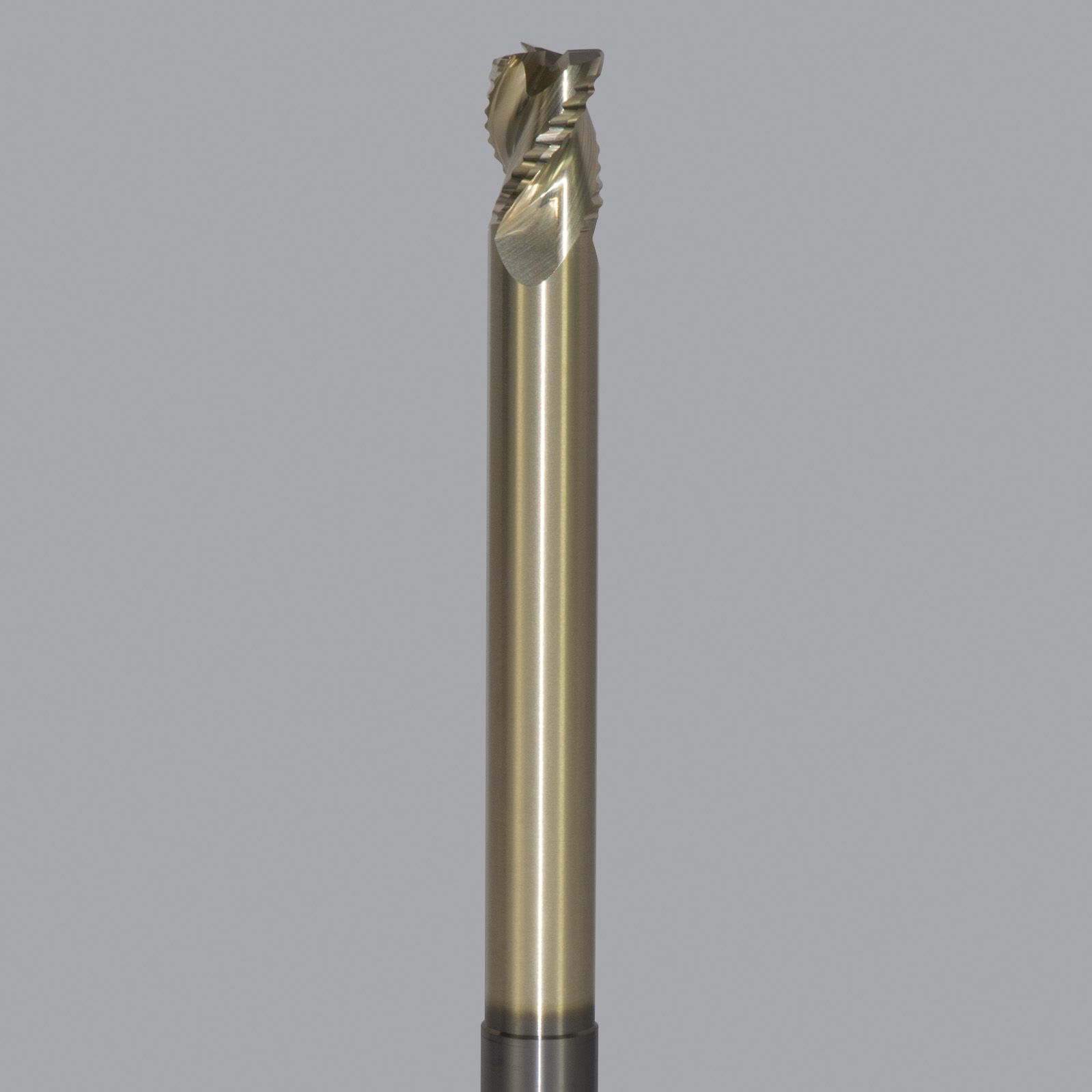 Solid Carbide end mill, 3 flute, 0.060 corner rad, long length, necked, ZRN coated