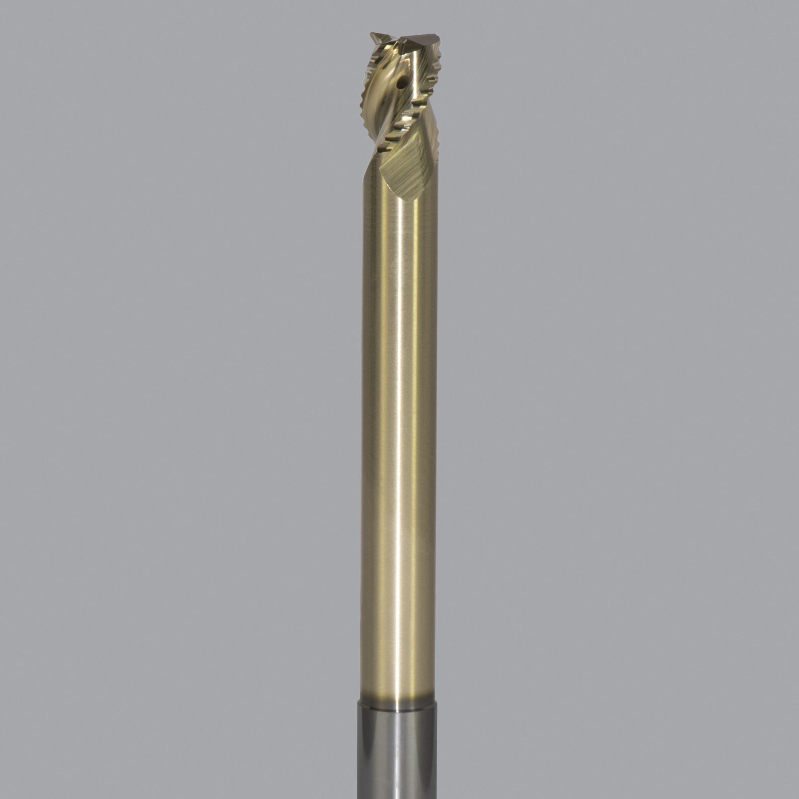 Solid Carbide end mill, 3 flute, 0.030 corner rad, long length, necked, ZRN coated
